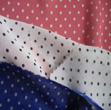 Chiffon fabric with dots, made of 100% polyester Model Number: GY-03 MOQ: 1000 Meter Country of Origin: China (mainland) Primary Competitive Advantages: Experienced Staff Price Product Performance Prompt Delivery Service Main Export Markets: Eastern Europe North America Central/South America Asia Western Europe Australasia Key Specifications/Special Features: Weight: 80 to 100gsm Yarn count: 75D Finish: printed Suitable for ladies' dress, skirt, pajamas, scarf, evening and wedding dresses Customized packing types are accepted Packing: Quantity: 50 or 100m/roll Payment Details: Payment Terms: Telegraphic Transfer (TT,T/T) Minimum Order: 1000 Meter Delivery Details: FOB Port: Shanghai Lead Time: 7 - 15 days